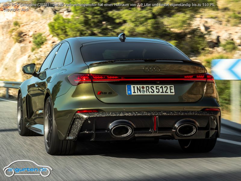 Audi RS 5 Limousine (2026) - Der V6 Verbrennungsmotor hat einen Hubraum von 2,9 Liter und leistet eigenständig bis zu 510 PS.