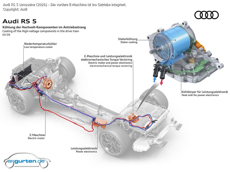 Audi RS 5 Limousine (2026) - Die vordere E-Maschine ist ins Getriebe integriert.