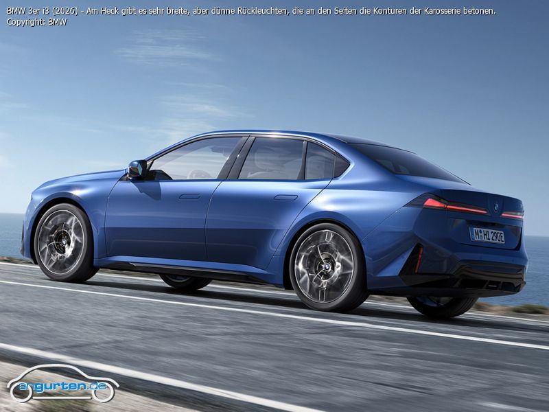 BMW 3er i3 (2026) - Am Heck gibt es sehr breite, aber dünne Rückleuchten, die an den Seiten die Konturen der Karosserie betonen.