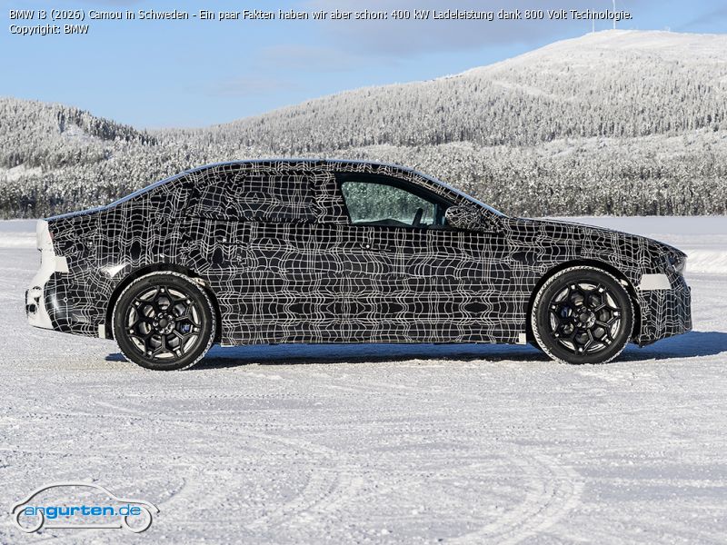 BMW i3 (2026) Camou in Schweden - Ein paar Fakten haben wir aber schon: 400 kW Ladeleistung dank 800 Volt Technologie.
