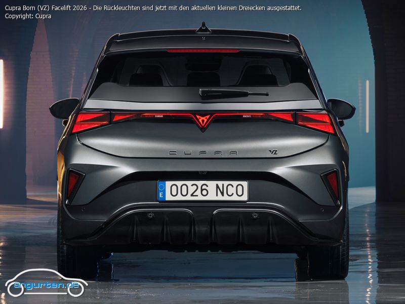 Cupra Born (VZ) Facelift 2026 - Die Rückleuchten sind jetzt mit den aktuellen kleinen Dreiecken ausgestattet.