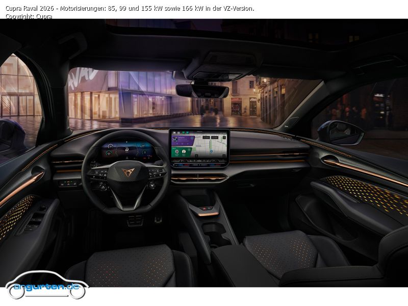 Cupra Raval 2026 - Motorisierungen: 85, 99 und 155 kW sowie 166 kW in der VZ-Version.