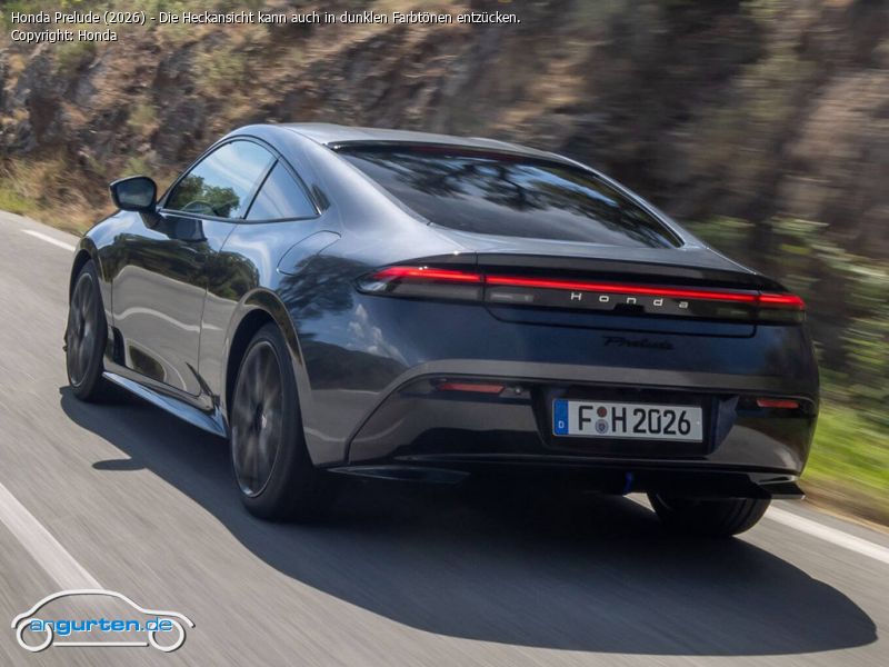 Honda Prelude (2026) - Die Heckansicht kann auch in dunklen Farbtönen entzücken.