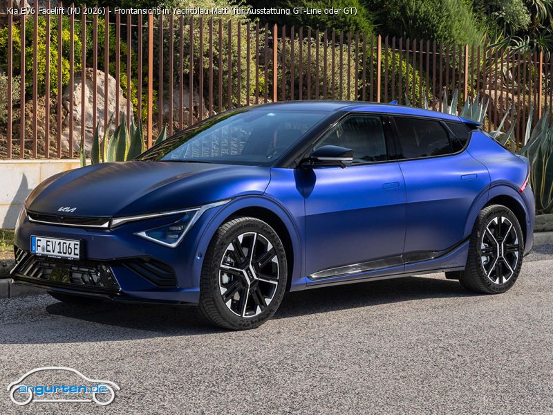 Kia EV6 Facelift (MJ 2026) - Frontansicht in Yachtblau Matt (für Ausstattung GT-Line oder GT)