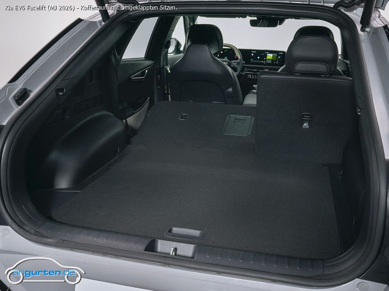 Kia EV6 Facelift (MJ 2026) - Kofferraum mit umgeklappten Sitzen.