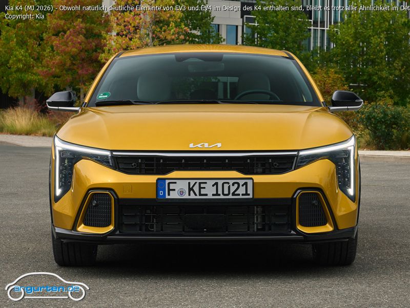 Kia K4 (MJ 2026) - Obwohl natürlich deutliche Elemente von EV3 und EV4 im Design des K4 enthalten sind, bleibt es trotz aller Ähnlichkeit im Detail immer noch ein eigenständiges Design.