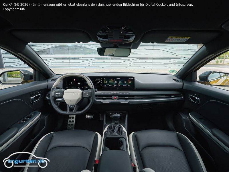 Kia K4 (MJ 2026) - Im Innenraum gibt es jetzzt ebenfalls den durchgehenden Bildschirm für Digital Cockpit und Infoscreen.