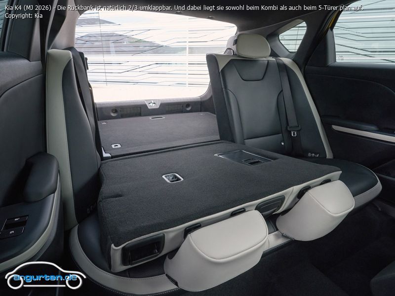 Kia K4 (MJ 2026) - Die Rückbank ist natürlich 2/3 umklappbar. Und dabei liegt sie sowohl beim Kombi als auch beim 5-Türer plan auf.