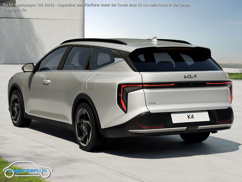 Kia K4 Sportswagon (MJ 2026) - Gegenüber dem Fünftürer bietet der Kombi etwa 25 cm mehr Raum in der Länge.