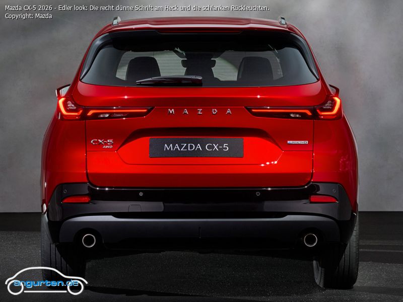 Mazda CX-5 2026 - Edler look: Die recht dünne Schrift am Heck und die schlanken Rückleuchten.