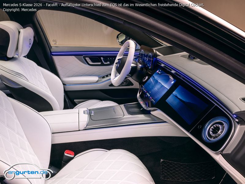 Mercedes S-Klasse 2026 - Facelift - Auffälligster Unterschied zum EQS ist das im Wesentlichen freistehende Digital Cockpit.