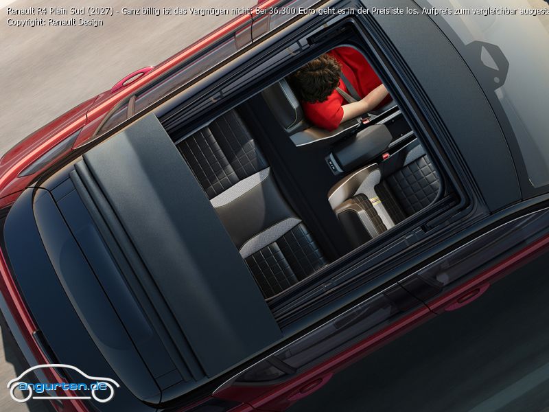 Renault R4 Plein Sud (2027) - Ganz billig ist das Vergnügen nicht: Bei 36.300 Euro geht es in der Preisliste los. Aufpreis zum vergleichbar ausgestatteten R4 sind das aber lediglich 1.800 Euro. Das ist okay.