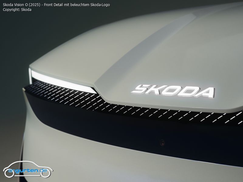 Skoda Vision O (2025) - Front Detail mit beleuchtem Skoda-Logo