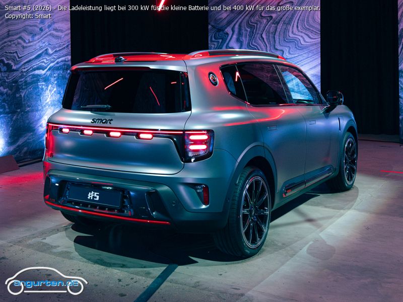 Smart #5 (2026) - Die Ladeleistung liegt bei 300 kW für die kleine Batterie und bei 400 kW für das große exemplar.