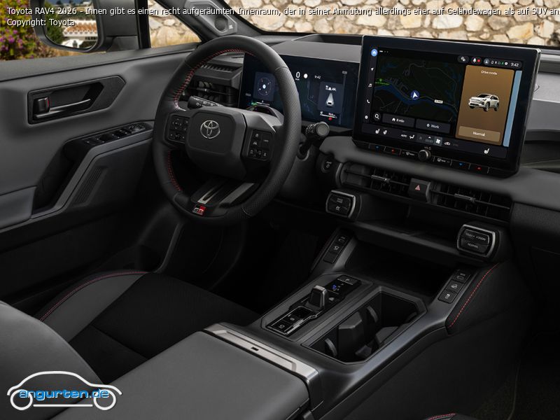 Toyota RAV4 2026 - Innen gibt es einen recht aufgeräumten Innenraum, der in seiner Anmutung allerdings eher auf Geländewagen als auf SUV anspielt.