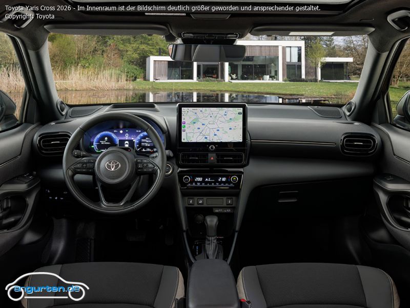Toyota Yaris Cross 2026 - Im Innenraum ist der Bildschirm deutlich größer geworden und ansprechender gestaltet.