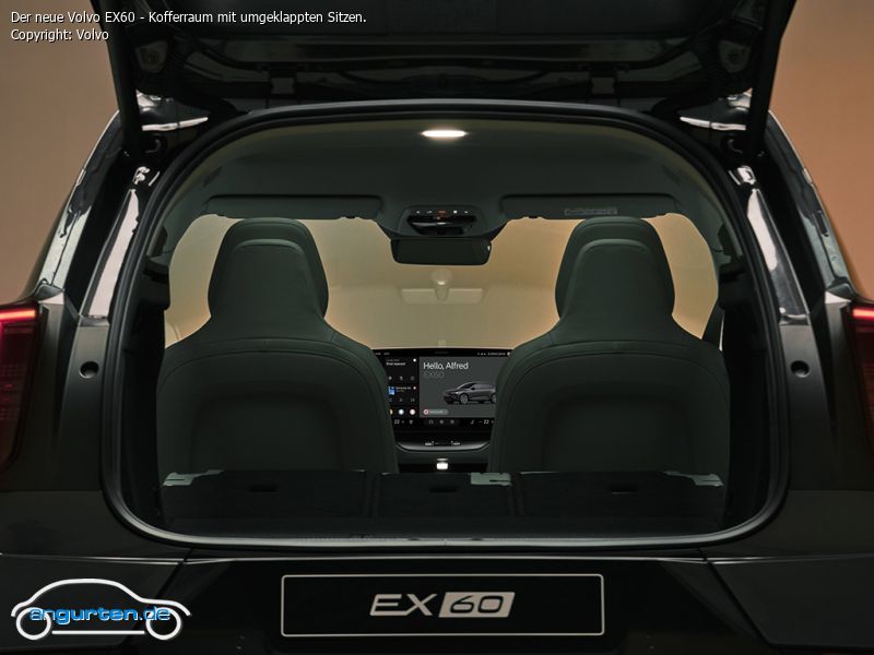 Der neue Volvo EX60 - Kofferraum mit umgeklappten Sitzen.