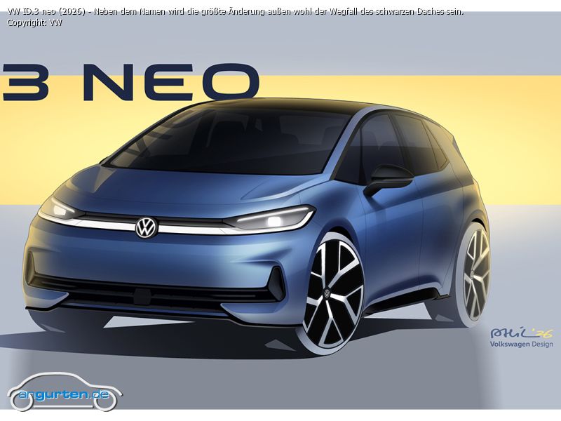 VW ID.3 neo (2026) - Neben dem Namen wird die größte Änderung außen wohl der Wegfall des schwarzen Daches sein.