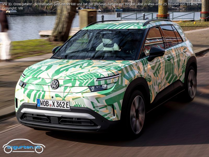 VW ID. Cross getarnt - Schnellladen geht mit 90 kW und bei der größeren Batterie mit 105 kW. Also in etwa einer 25 Minuten von 10-80%