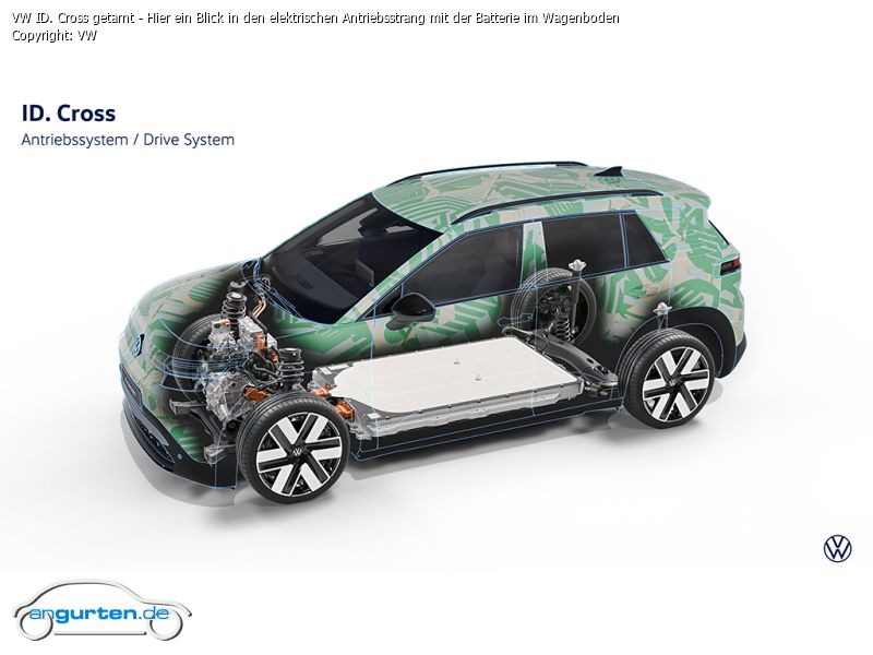 VW ID. Cross getarnt - Hier ein Blick in den elektrischen Antriebsstrang mit der Batterie im Wagenboden