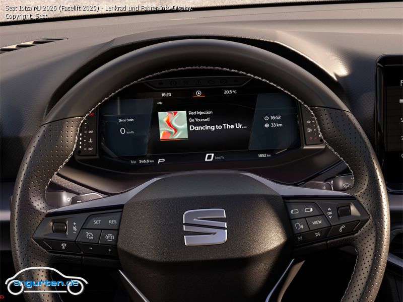 Seat Ibiza MJ 2026 (Facelift 2025) - Lenkrad und Fahrer-Info-Display.